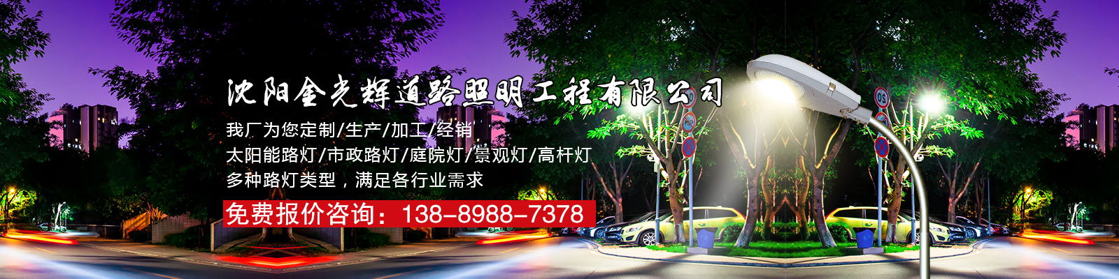 沈陽(yáng)金光輝道路照明工程有限公司是一家從事太陽(yáng)能路燈、庭院燈、高桿燈、景觀燈、草坪燈、工礦燈、LED照明、監(jiān)控桿、信號(hào)燈桿、音樂(lè)噴泉等室內(nèi)外照明燈具綜合性生產(chǎn)廠家及專業(yè)的研發(fā)、生產(chǎn)、銷售、服務(wù)為一體的技術(shù)企業(yè)。